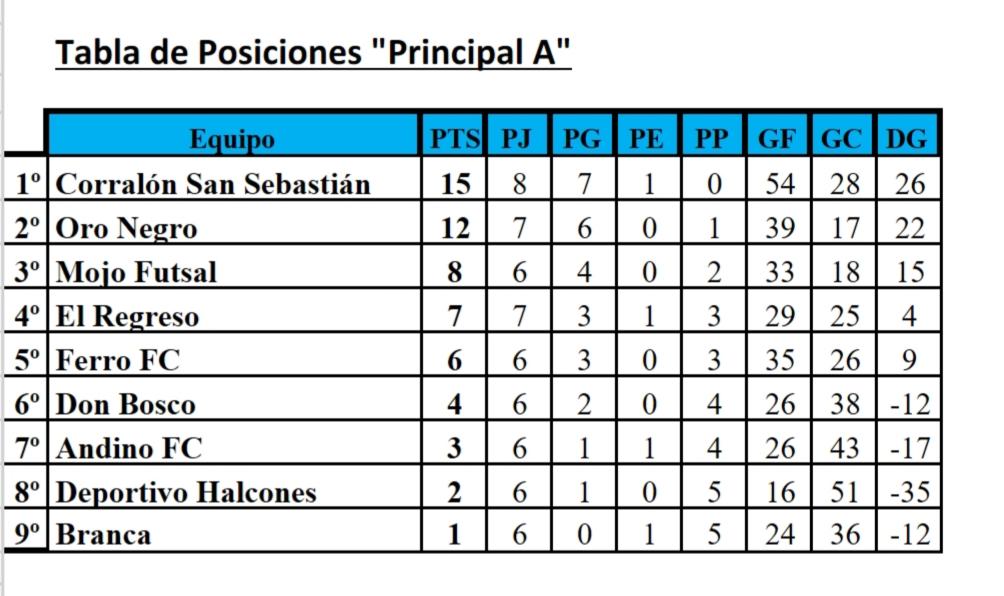 La Escuela Municipal A de Pico Truncado tiene 10 Ps. Inka Voley de Las Heras tiene 9 puntos , Kosten Aike lo sigue con 7 unidades y cierran las posiciones Coiròn Voley (4 ps. ) y Escuela Municipal B de Pico Truncado con 0 Punto.