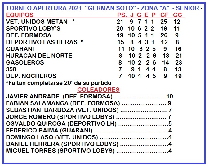 *La  2da fecha de la 2da. rueda en la Categoría Senior (TORNEO APERTURA 2021 “GERMAN SOTO”) se jugó íntegramente el sábado  . Por el inicio de la 2da. rueda en Master falta completarse 20’ del partido entre Deportivo LH y Veteranos Unidos *
