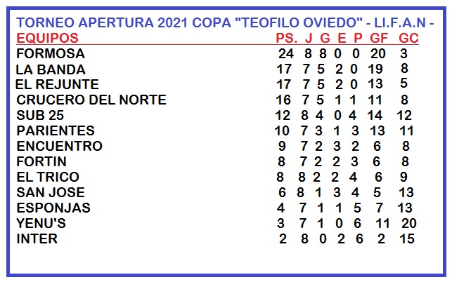 RESULTADOS DE LOS PARTIDOS QUE SE DISPUTARON EN EL ESTADIO CRISTINA URIBE POR EL TORNEO “APERTURA” 2021 COPA “TEOFILO OVIEDO”