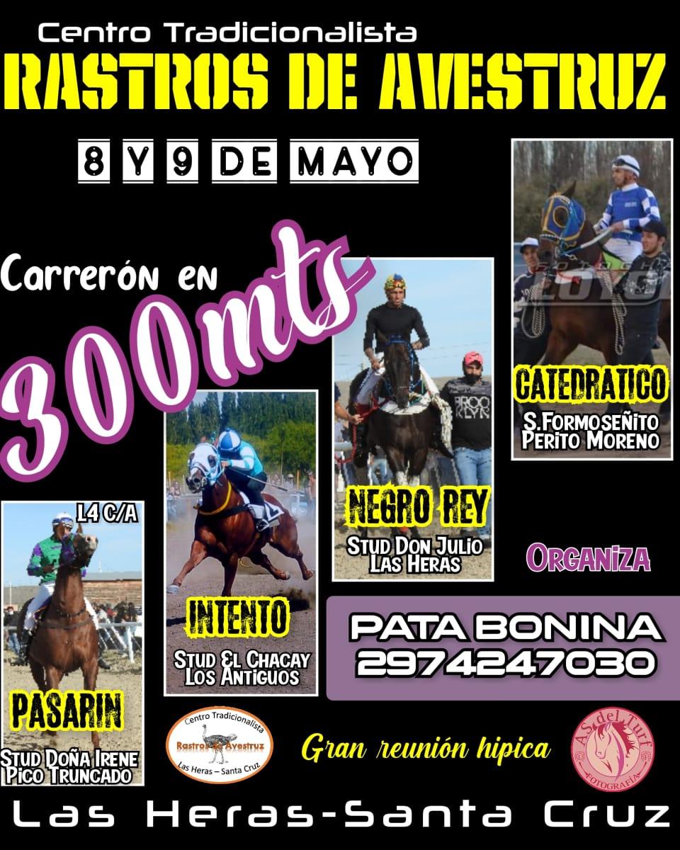 *Para los dìas sàbado 8 y domingo 9 de Mayo el Centro Tradicionalista Rastros de Avestruz había previsto la realización de dos jornadas hípicas de carreras cuadreras con la participación de los mejores exponentes de la Patagonia Sur . Ayer Lunes se definió la suspensión de dicho evento por la prohibición que establece el nuevo Decreto Provincial *