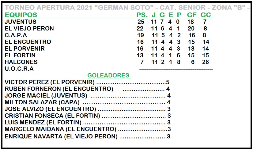 En la Zona B Juventus es el único líder , con tres puntos de ventaja sobre El Viejo Peròn. Ambos equipos ganaron el fin de semana y son los principales protagonistas de los puestos de vanguardia.