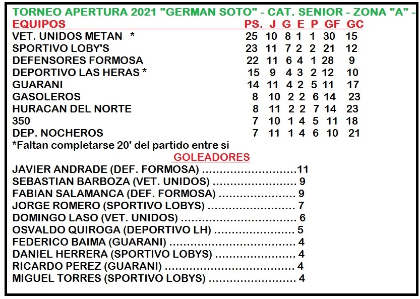15,20 Hs. VETERANOS UNIDOS -DEPORTIVO LH *(Se completaràn los minutos que restan para finalizar el partido)