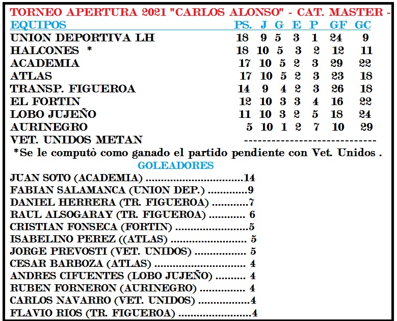 10,00 Hs. ATLAS – FORTIN (MASTER)