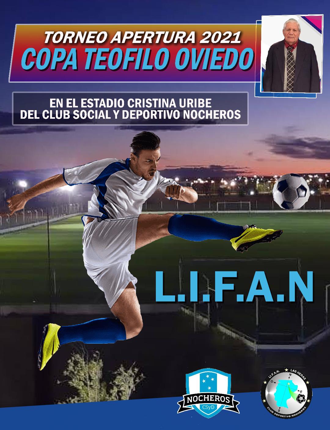 *En las instalaciones del Estadio “Cristina Uribe” de nuestra ciudad este sábado culminarà la rueda inicial del Torneo Apertura 2021 que lleva por nombre COPA “TEOFILO OVIEDO” y que organiza la LI.F.A.N (Liga de Futbol Amateur de Nocheros) *