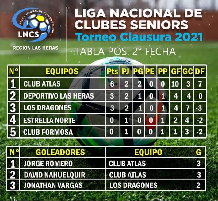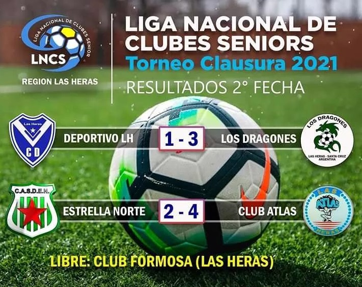 *Por la 2da fecha del Torneo Clausura 2021 de la Liga Nacional Senior que se disputò el pasado domingo en la cancha del Club Deportivo Las Heras, dos resultados sorpresivos marcaron la primera derrota del local Deportivo Las Heras en el certamen y el debut con caìda incluìda del equipo representativo del futbol caletense (Estrella del Norte) al ser derrotado por Atlas, el único líder que tiene el torneo.*