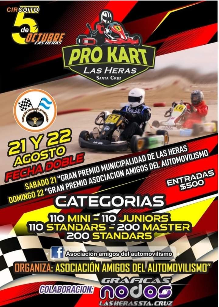 *En el Circuito 5 de Octubre bajo la organización de la Asociación Amigos del Automovilismo de Las Heras , las cuatro categorías del automovilismo santacruceño vibraron durante sábado y domingo ante un imponente marco de pùblico y buena cantidad de màquinas . En TN 800 ganaron LUIS BORDÒN el sábado y LEONARDO URRICELQUI el domingo . En la Monomarca R 12 FERNANDO DEL VALLE triunfò el sábado y el domingo. En Fuerza Limitada Regional el ganador de ambas finales fue el sarmientino RENÈ LUDDEN , mientras que en la Categoría Hot Rod el gran ganador de la doble jornada fue el piloto lasherense MARCOS ENRIQUE *