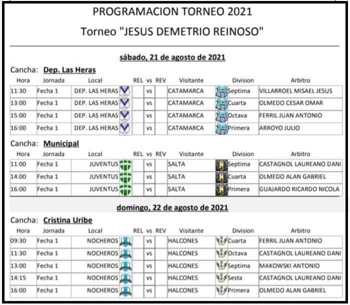 El sábado 21 de Agosto no habrà actividad por estar ocupado el Estadio Municipal por el Club Juventus.