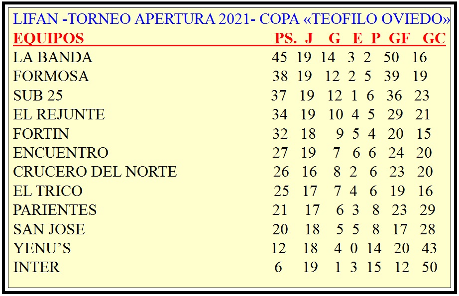 *Resultados de la nueva fecha que se jugò por la 2da. Rueda del Torneo Apertura 2021 Copa Teòfilo Oviedo que organiza la LIFAN en las instalaciones del Estadio Cristina Uribe *