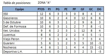 El Domingo 350 le ganó 1 a 0 al DEPORTIVO LAS HERAS. DEFENSORES DE FORMOSA hizo lo propio ante JUVENTUS por la mínima diferencia (1 a 0) ; VETERANOS UNIDOS venciò por la mínima (1-0) a 5 DE OCTUBRE , HURACÁN derrotò 3 a 1 a HALCONES ; GASOLEROS goleò 4 a 1 a GUARANÍ ; EL PORVENIR le ganó 1 a 0 a FORTÍN y NOCHEROS superò 1 a 0 a EL VIEJO PERÓN .