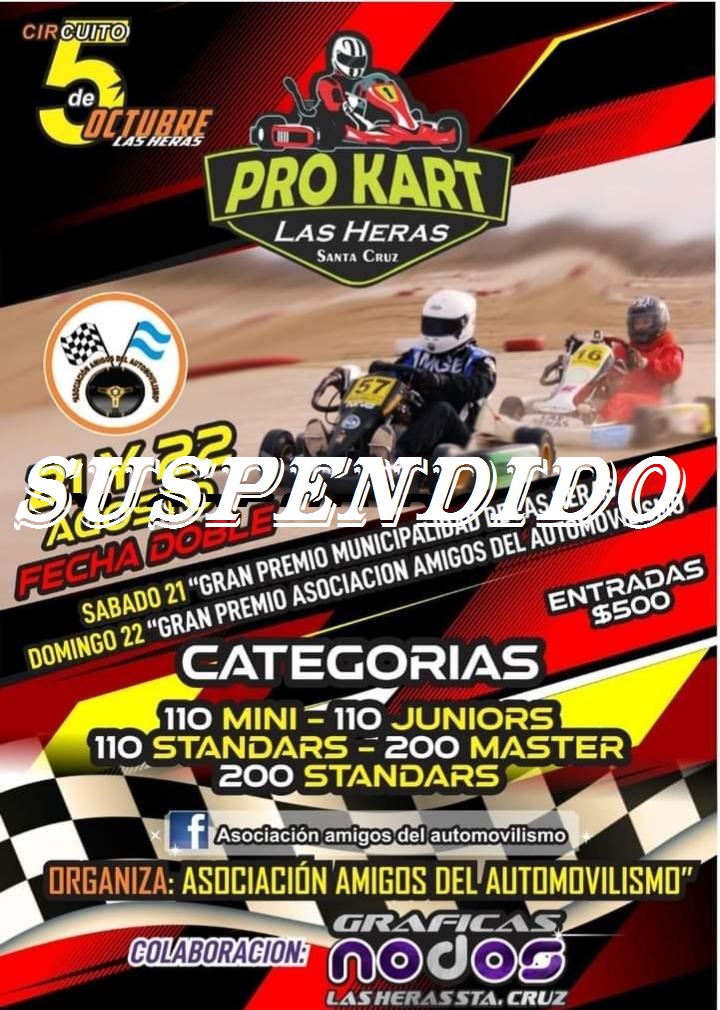 En el Kartòdromo del Circuito 5 de Octubre, la Asociaciòn Amigos del Automovilismo de Las Heras había reprogramado durante sábado y domingo la fecha doble que debió postergarse por razones climáticas el sábado 21 y domingo 22 .