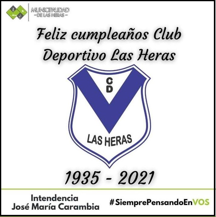 Una de las salutaciones institucionales que recibió el Club Deportivo Las Heras fue la del Intendente Municipal Josè Marìa Carambia , difundida a travès de la pàgina oficial de la comuna local :