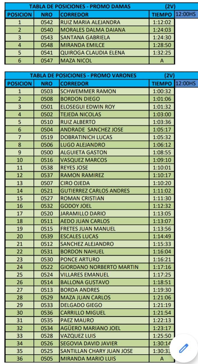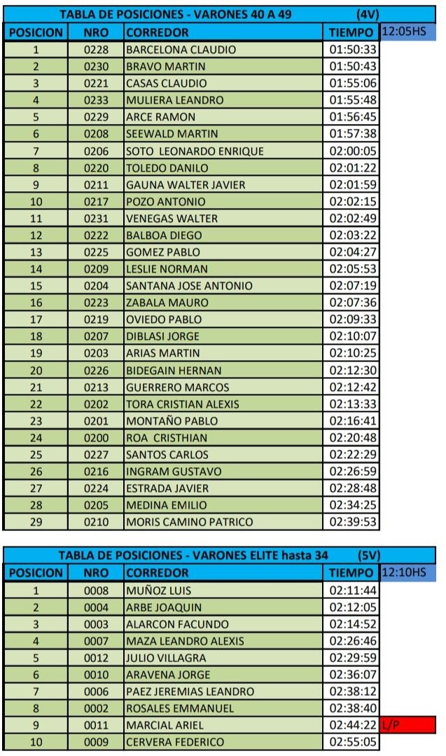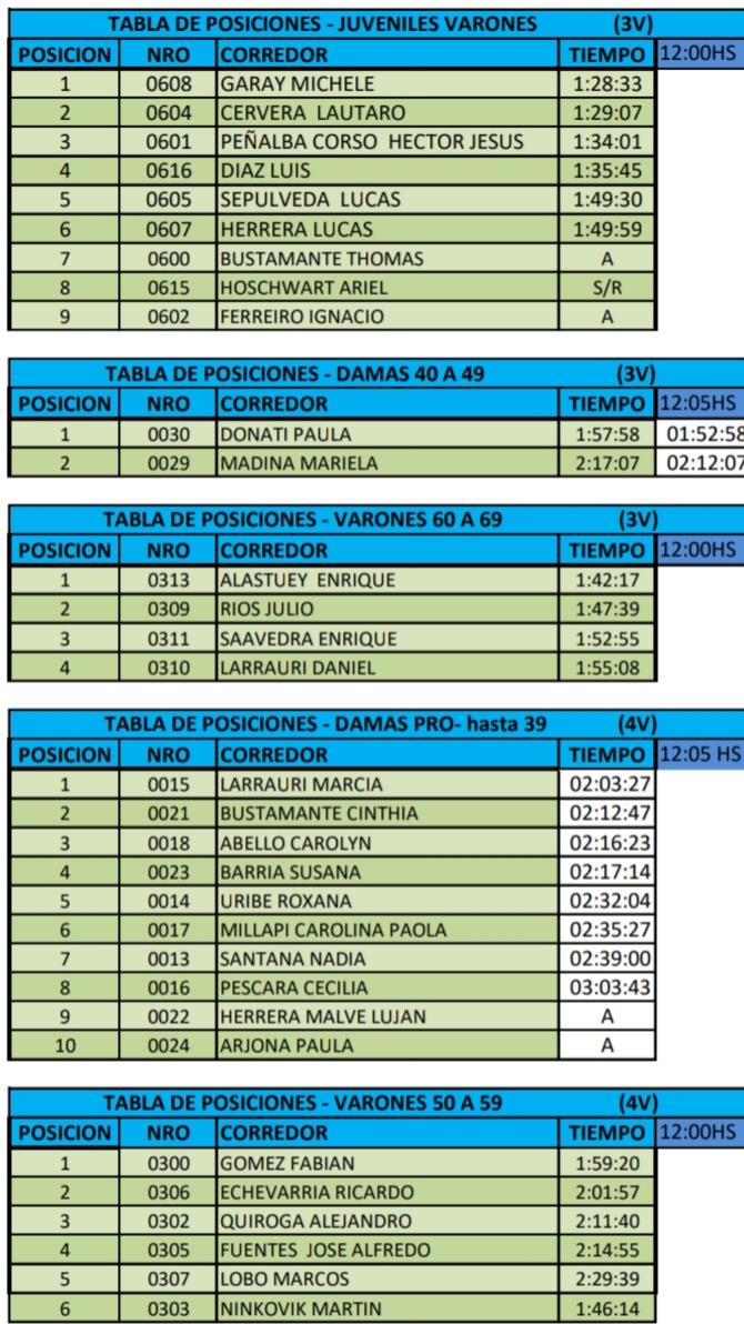 El Grand Prix Atlètico “Invierno 2021” registra las siguientes posiciones :