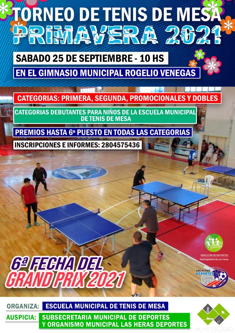 El Torneo de Tenis de Mesa “PRIMAVERA” 2021 contarà con la organización de la Escuela Municipal de Tenis de Mesa que dirige el Instructor Josè Luis Fernàndez  y estarà auspiciado por la Municipalidad de Las Heras a travès de  la  Subsecretarìa Municipal de Deportes.