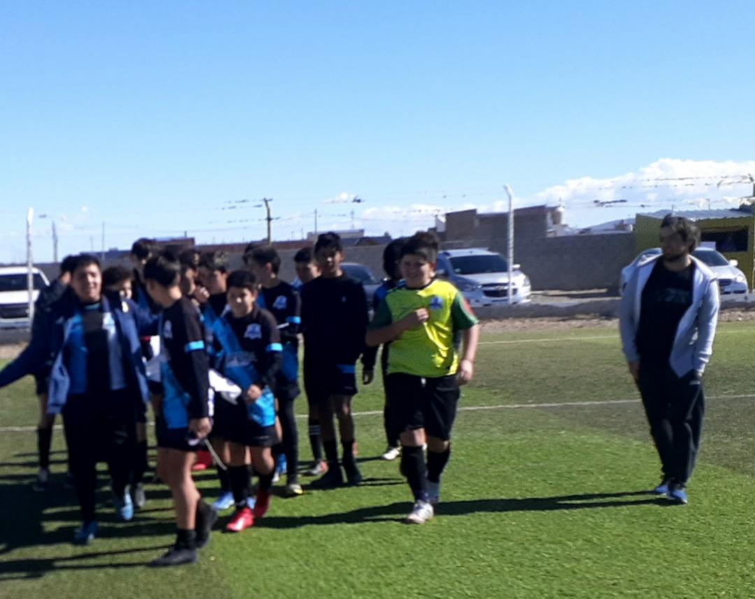 En el partido que abrió la jornada sabatina de finales, el viento fuerte que sopló en  el  “maltratado”  Estadio Municipal no fue impedimento para que los chicos de los tradicionales rivales protagonizaran  un entretenido y  equilibrado cotejo, que el conjunto de la v  azulada definiò  a su favor con un gol de Joaquín  Tomaghello.
