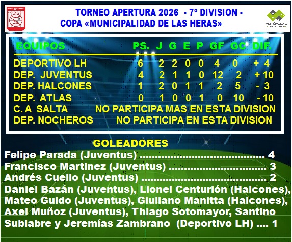 DEP. JUVENTUS …. 10 (Francisco Martinez -3-, Felipe Parada -3-, Andrés Cuello, Axel Muñoz, Daniel Bazán, Mateo Guido)