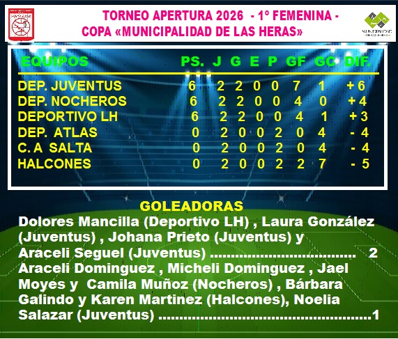 DEPORTIVO LAS HERAS ……3 (Dolores Mancilla -2-, Milagros Echeverría)