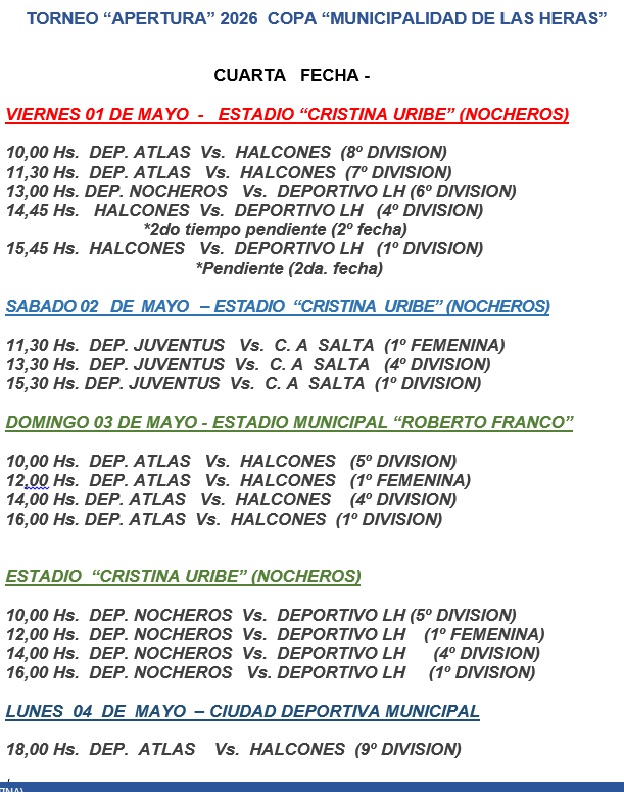 El Torneo “Apertura” 2026 Copa “Municipalidad de Las Heras” marcha a buen ritmo , a pesar de las adversas condiciones del clima.