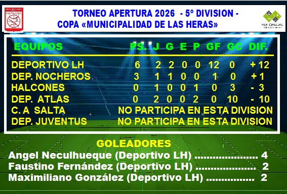 DEPORTIVO LH ……9  (Tobías Extremador -3-, Gianluca González -2-, Santiago Sepúlveda -2-, Nehuén Arriola, Juan Bautista Martinez)