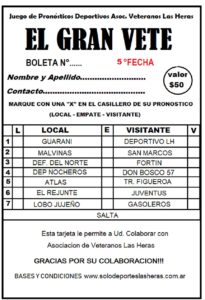 En 5TA . DIVISION EL FORTIN venció por penales a SAN LORENZO esta tarde en el Estadio Municipal luego de igualar en el tiempo reglamentario y definirá la Copa FARMACIA DEL PUEBLO enfrentando al Club Deportivo Las Heras, que fue el ganador de la serie clasificatoria. En 4TA. DIVISION , DEPORTIVO NOCHEROS venció 3 a 1 por penales a SALTA luego de igualar 0 a 0 en el tiempo reglamentario ayer sàbado en la cancha del Club Deportivo y…